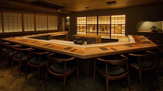 店内はカウンター15席のみ。障子に欄間、盆栽など和を基調としたデザインとなっております。