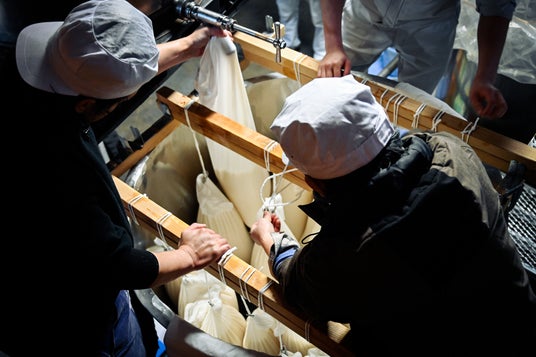 大阪府河内長野市に蔵を構える「天野酒」の袋搾りという工程。