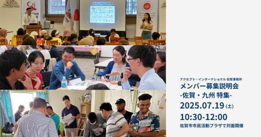 NPO法人アクセプト・インターナショナル(所在地:東京都中央区、代表理事:永井陽右)は、2025年7月19日(土)に佐賀市において、佐賀県では初となる対面でのメンバー募集説明会を開催いたします。