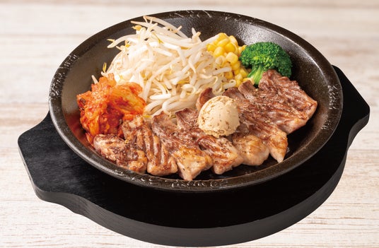 この夏は、これまで単品での提供だった「カルビステーキ」に、新たに"専用ライス"を組み合わせた特別セットが誕生。ボリューム満点のステーキと、こだわりのライスを一緒に味わえる、新しいスタイルでの提供を開始します。熟成された赤身の旨みと脂の甘みが調和した、プリッとした弾力が特長の「厚切カルビステーキ」は、食べごたえも十分。焼きたての鉄皿で提供されるジューシーなお肉は、甘口×辛口をブレンドした特製ソースとも相性抜群です。