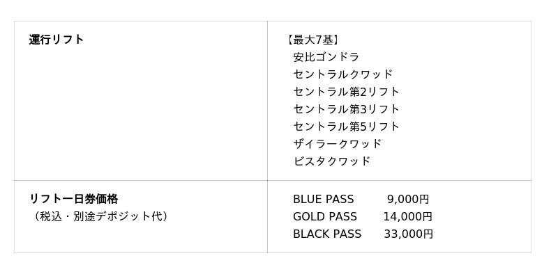 ※営業日により運行リフトが変更となります。詳細情報は公式ホームページでご確認ください。