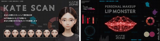 「KATE SCAN」は、『KATE ZONE』内の実験室=「LAB」エリアに設置された、顔印象分析コンテンツです。今回のリニューアルでは、アイブロウとリップ分析を新たに搭載し、これまで以上に没入できるコンテンツが広がりました。また、ユーザーがアイメイクやリップに取り入れたい色を選択できる機能を追加。その後、スマートフォンのカメラで顔をスキャンすることで、KATE独自のパーツ比率・顔印象分析から、あなたの魅力を引き出すメイクを提案します。