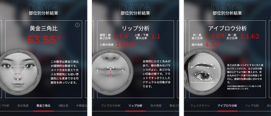 目の角度や黄金三角比率などのパーツ比率分析に眉の角度、唇の比率を測る機能が追加。1度顔をスキャンするだけで、これまで以上に詳しい分析結果を知ることができます。