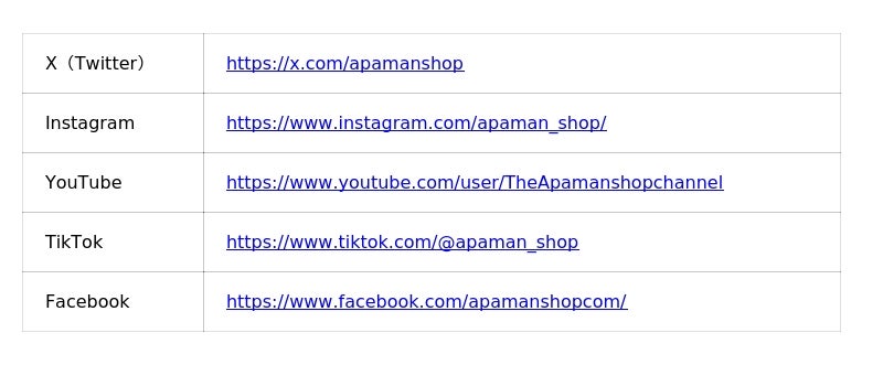 Tel: 0570-058-889 Mail: pr@apamanshop.co.jp