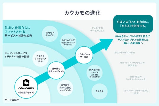 「カウカモ」はこれまでも、お客さま一人ひとりの「叶えたい暮らし」に寄り添えるよう、メディアからエージェント、リノベーションまでサービスを拡張することで、利便性の高い一気通貫のサービスを提供してきました。