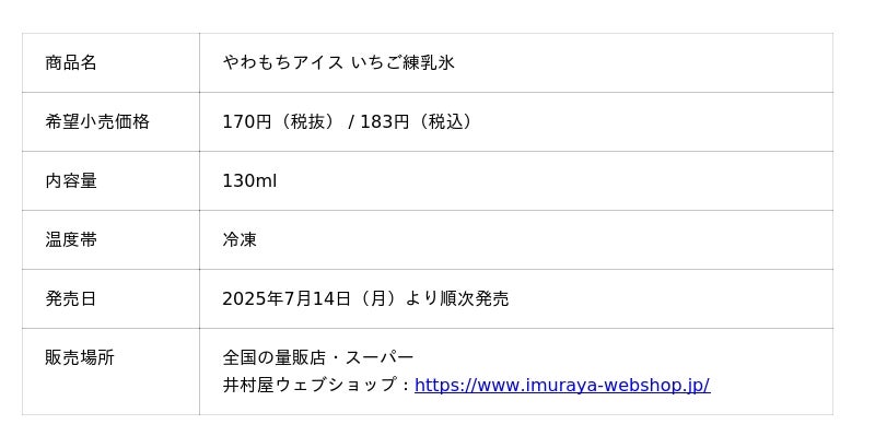 井村屋株式会社(本社:三重県津市高茶屋七丁目1番1号、社長:岩本 康)は、アイスの人気ブランドである「やわもちアイスシリーズ」より、新商品『やわもちアイス いちご練乳氷』を2025年7月14日(月)から夏季限定で発売します。