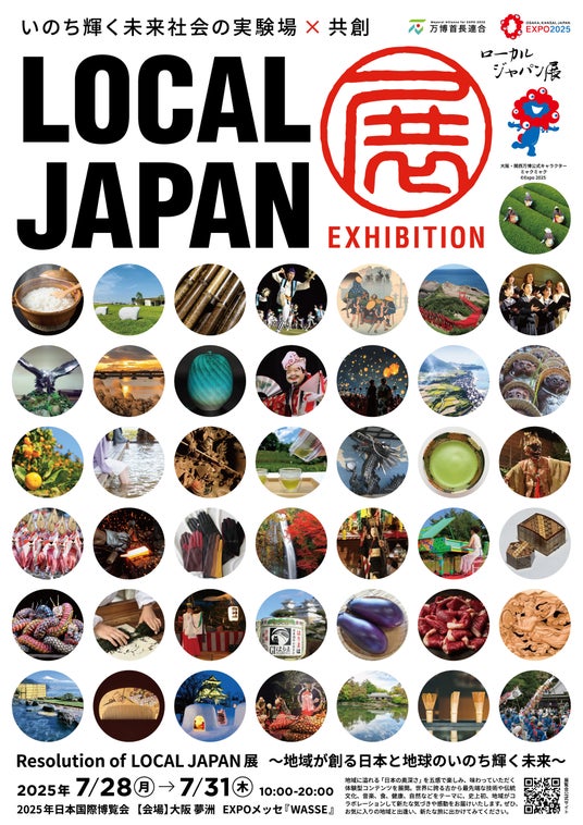 万博首長連合では、2025年7月28日から31日まで大阪・関西万博会場施設WASSE南側で、都道府県の枠を超えた自治体参加イベント『Resolution of LOCAL JAPAN展 ~地域が創る日本と地球のいのち輝く未来~』を実施します。地域にあふれる「日本の奥深さ」を五感で楽しみ、味わっていただく体験型イベントです。史上初、東北から沖縄まで全国43地域が地域や文化、世代を超えてコラボレーションし、6つのテーマ、14の共創コンテンツ(ブースとステージ)で、世界に誇る伝統芸能、文化、祭り、音楽、工藝、和食、健康、自然の魅力をお届けします。万博ならではの体験、気になる地域と出逢いに、是非お越しください。