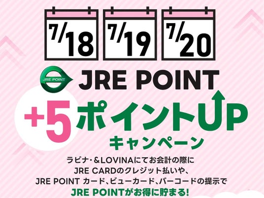 ラビナ・&LOVINAにてお会計の際に、JRE POINTがお得に貯まるキャンペーンを実施します。開催期間:2025年7月18日(金)~7月20日(日)