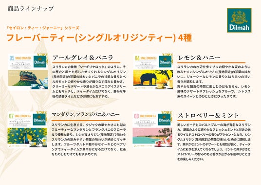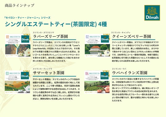 産地の香りと味わいを、紅茶の時間に。ディルマが届けるスリランカ紅茶の"旅する一杯" 「ディルマ セイロンティー・ジャーニーシリーズ」。全8種で構成され、日常にも贈り物にも。