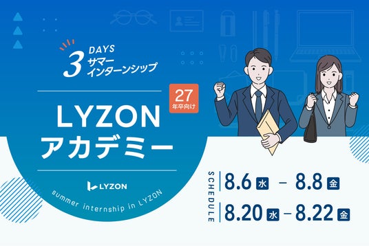 株式会社LYZON(本社:東京都文京区、代表取締役:藤田 健)は、2027年3月卒業予定の学生を対象に、Webディレクター、Webエンジニア、企画提案営業の4職種から選べる3dayインターンシップ「LYZON アカデミー」を2025年8月6日(水)、8月20日(水)に開催いたします。