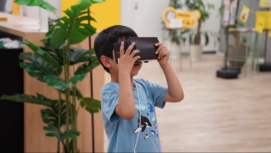 自分だけの本格VRゴーグルを手作りします。スマホをセットすれば、そこは仮想世界。つくったVRゴーグルは持ち帰れるので、自宅でも仮想現実の世界が体験できるように。テクノロジーを"つかう"だけでなく、"つくる"ことから学ぶ、最先端のモノづくり体験です。