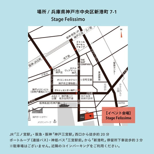 ・イベント総合受付場所/ Stage Felissimo 1F 神戸市中央区新港町7番1号