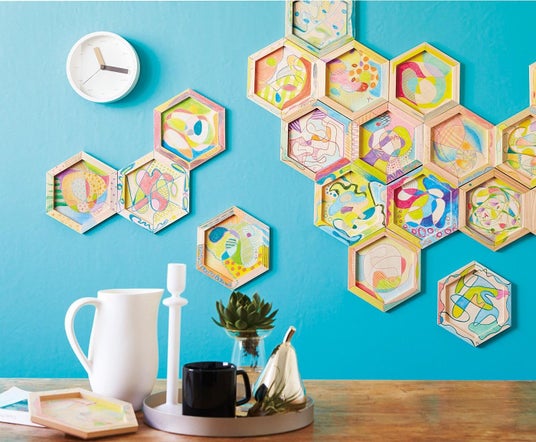 木製の額に500色の色えんぴつを使って、まるで自分が蜂になったような気持ちで色の世界に没頭します。紙とは違う木の描き心地も楽しめます。