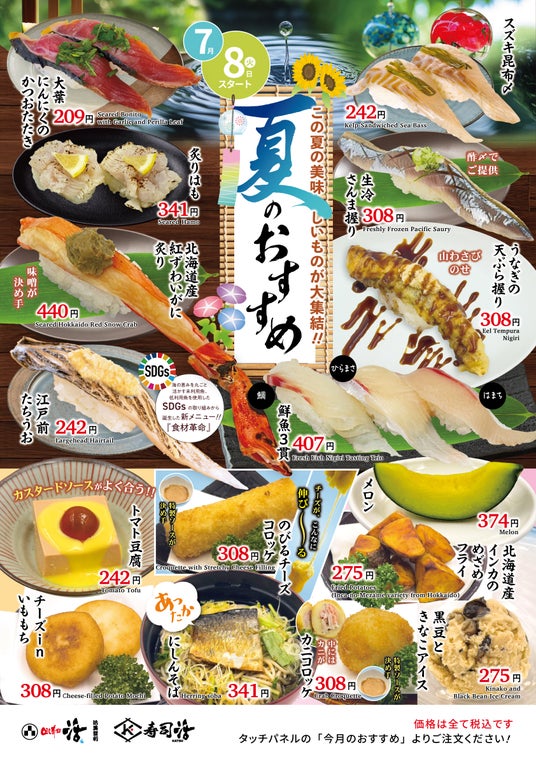 株式会社活美登利(本社:東京都品川区、代表取締役社長:土屋秀仁)が運営する「回し寿司活/寿司活」は、運営店舗で7月8日(火)から季節限定おすすめメニューを販売いたします。