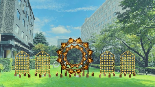 夏の日本庭園に、風車とひまわりが爽やかな竹あかりフォトスポットが登場。400以上もの竹あかりとともに、夜の日本庭園を華やかに演出します。
