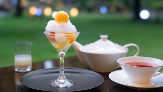 日本庭園を一望するラウンジで味わう抹茶かき氷も!