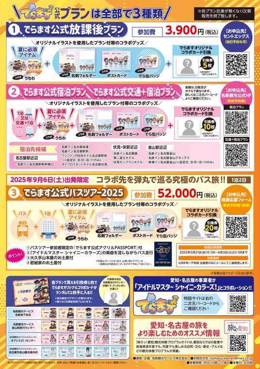 名鉄観光サービス株式会社(本社:名古屋市)は、「アイドルマスター シャイニーカラーズ」と愛知・名古屋の事業者がコラボレーションする「でらます」(でらますシャニ)を2025年8月8日(金)から9月30日(火)まで実施いたします。本企画の詳細は特設サイトにてご確認いただけます。