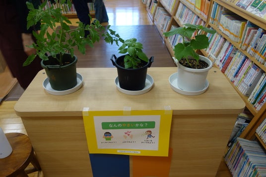 7月5日、6日にこっそり畑プロジェクト5周年を記念して、学内のおはなしレストラン(児童絵本専門図書館)とのコラボレーションにより、おはなしレストラン内に畑のような絵本棚を設置しました。