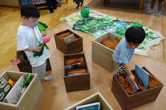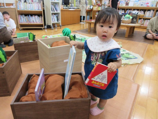 絵本棚の設置後は、来館してくれた親子が興味津々で畑から絵本を収穫していました!土から飛び出た絵本には、どんな素敵な物語があったのでしょうか…