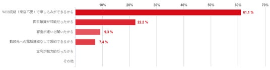 約8割の回答者が即日融資の可否を借入先を決める重要な要素としていた。SMBCモビットで即日融資が可能なことは、ユーザーにとって大きなメリットになっているといえる。