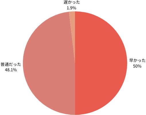 SMBCモビットの審査のスピードが「早かった」と回答した人が50%で最も多く、「遅かった」と答えた人は1.9%とわずかだった。