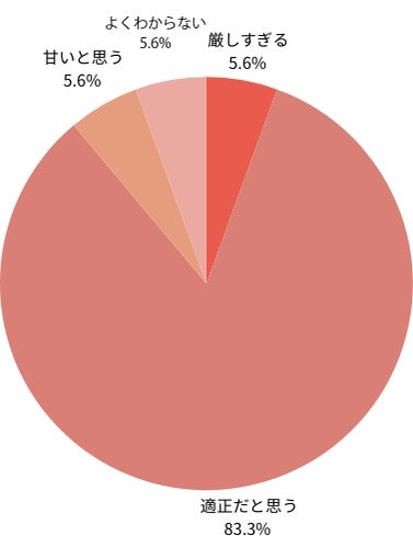 SMBCモビットの審査基準については、「適正だと思う」人が83.3%で最も多く、「甘いと思う」人も5.6%いた。