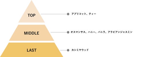 すっきりとしつつ丸みのあるティーノートをトップに効かせた、青々しさも感じられる洗練された香りです。オスマンサスの花の甘さはキープしながら、ウッディノートやグリーンノートも加え、しつこさのない上品な甘さに仕上げました。