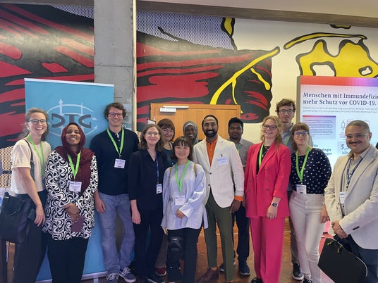 一般社団法人NTDs Youthの会理事(中央)と各国のNTDs関連ユース団体のメンバーたち、ドイツ熱帯医学会2024にて