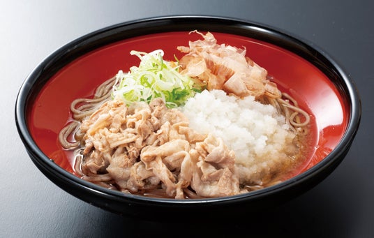 夏にぴったり擦り立ての爽やかな辛味おろしとやわらか豚肉を一緒に楽しめる期間限定おすすめ商品です。 「冷しゃぶ辛味おろしそば 税込830円」