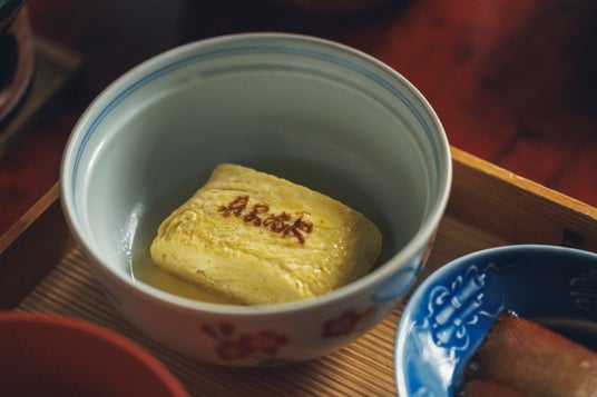 大丸別荘のだし巻き卵の美味しさには、3つの秘密があります。一つは、長年変わらぬ大丸伝統のだしの味。口いっぱいに広がる上品な旨味と優しい香りが特徴です。二つ目は、熟練の職人による丁寧な手巻き。ひと巻きずつ心を込めて仕上げています。そして三つ目は、大判のフライパンを使うこと。これにより、ふっくらとした絶妙な食感が生まれます。朝の贅沢をお楽しみください。