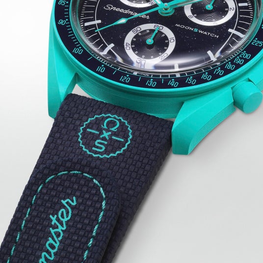 「Bioceramic MoonSwatch」コレクションは、月面に初めて到達した伝説の時計「OMEGA Speedmaster Moonwatch」へのオマージュとして、Swatch独自の革新的な視点で天体の魅力を持つクロノグラフのコレクションとして2022年に誕生。OMEGA Speedmaster Moonwatchのエッセンスを受け継ぎつつ、Swatchならではのユニークなエネルギーを加えた特別なコレクション。