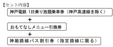「おもてなしきっぷ」は、「神戸電鉄全線 1 日乗り放題の乗車券」と、神鉄沿線の飲食店や施設で利用できる「おもてなしメニュー引換券」「神姫路線バス割引券」がセットになったお得な企画乗車券です。