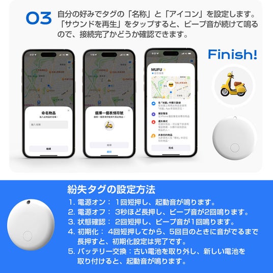 車やバイクの鍵、車両の位置、子供や高齢者の見守り、ペットなど、色々なアイテムに対応でき、簡単に追跡することができます。