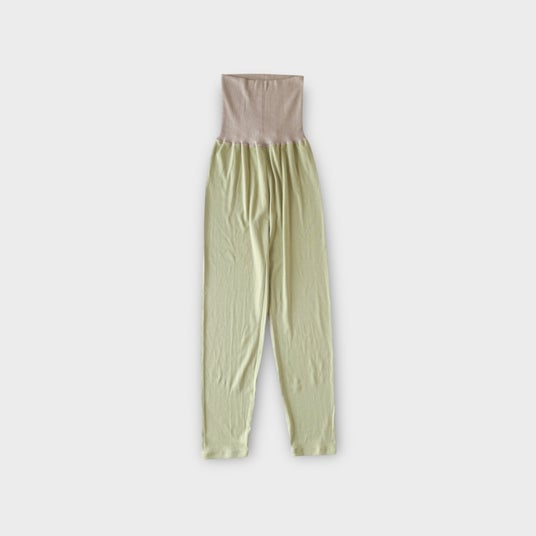 見た目はあくまでシンプル&クリーン。なのに、冷えやすいお腹まわりをしっかりとケアしてくれます。股上深めのシルエットと腹巻き一体型ウエストで、包み込むような安心感。ふんわりやさしいワッフル素材を使用し、肌あたりや伸縮性にもこだわりました。