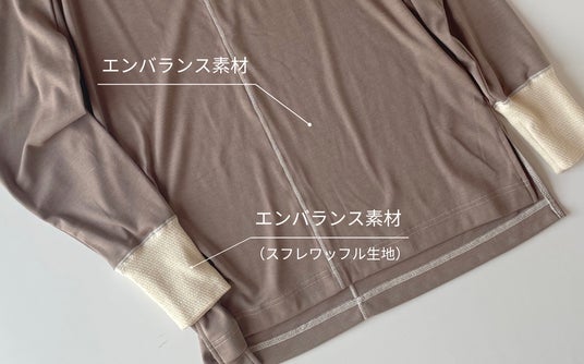 本体生地と腹巻部分に採用した「エンバランス素材」は遠赤外線効果と消臭効果を持ち、これらの悩みに寄り添います。