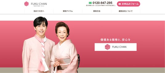 福ちゃんは出張買取方法が多彩で、女性スタッフが受付から訪問まで対応する「出張買取レディースプラン」、遠隔地から査定の様子が分かる「見守りプラン」など。買取価格最大10万円アップなど、嬉しい期間限定キャンペーンも行っています。