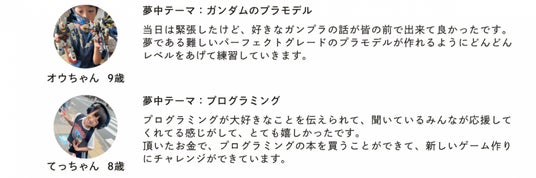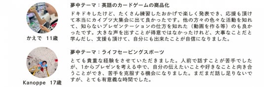 小中高生を対象に、お金(総額100万円)、機会、人脈等、子供たちが"夢中になっている何か"に対して、いままで以上に夢中になれるよう徹底的に応援・支援するイベントです。
