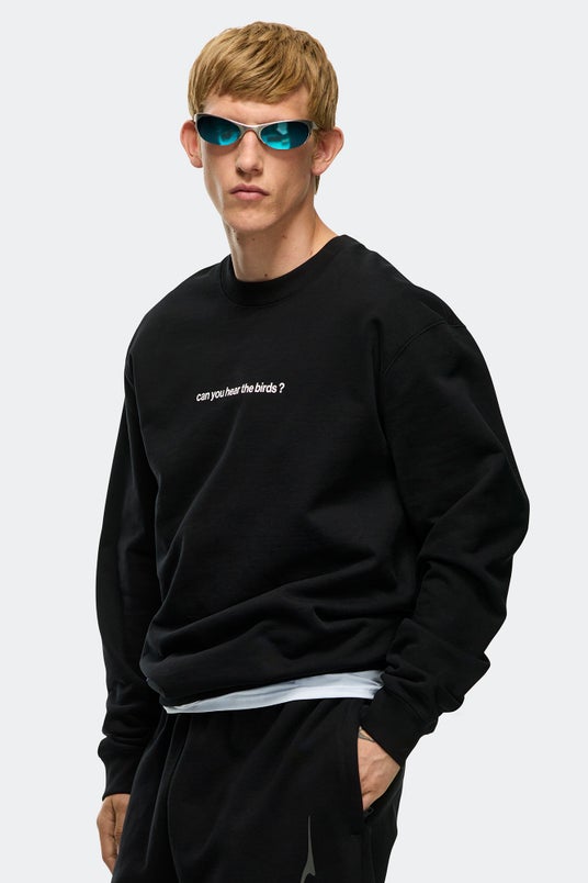 「ドーン クルー - グラフィック」は、「ドーン クルー」をベースに、フロントに「can you hear the birds?(鳥の声が聞こえますか?)」というグラフィックプリントをあしらったデザイン。自然の中へと踏み出すきっかけを与えてくれるような、力強くも詩的なメッセージが印象的です。