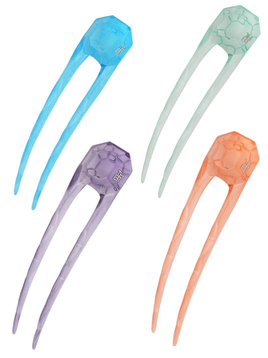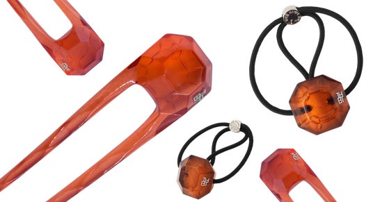トップにファセットカットを施したTHBTオリジナルUヘアピン。裏面にはダイヤモンド風の模様がカービングされ、アクリルの奥からプリズムのように透けて見えるユニークなデザインです。