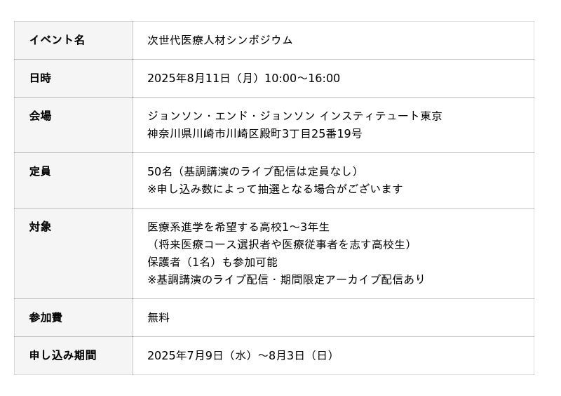 ジョンソン・エンド・ジョンソンと考える、医療の未来。高校生向け「次世代医療人材シンポジウム」2025年8月11日(月)開催決定