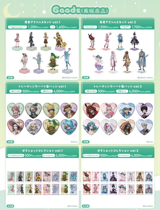 期間中、Chugai Grace Cafe【渋谷店】(第五人格×サンリオキャラクターズコラボカフェ)で税込2,000円以上飲食、「第五人格×サンリオキャラクターズ」展にて税込2,000円以上購入のお客様に各催事の特典を1枚プレゼントいたします。