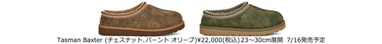 汎用性とエフォートレスなスタイルで長年にわたり愛され続けている UGGの定番スリッポン Tasmanをアップデートした、Tasman Baxter(タスマン バクスター)は、アッパーには天然のスエードが使用されているため、1 足ごとに表情が異なります。履き口には、再生素材から作られた UGGbraid と UGGのシグネチャーであるツインシームのディテールがあしらわれています。内側には、UGGplush(TM)のライニングとインソールが施されているので、ソックスを履いても、素足で履いても、至福のぬくもりに包まれます。