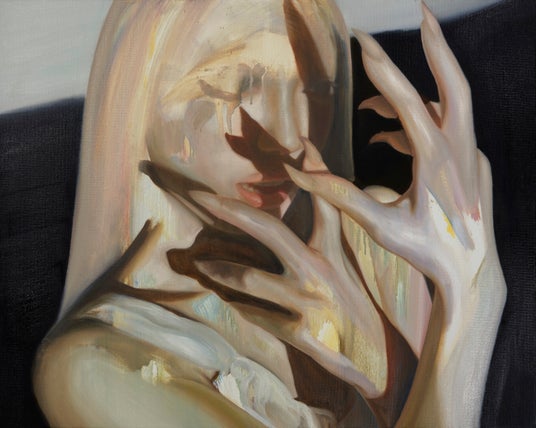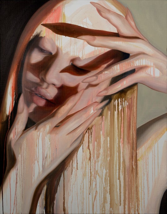 山中雪乃は1999年、長野県生まれ。現在は東京と神奈川を拠点に活動する。2023年、京都芸術大学大学院を卒業。これまで人間の物質としての輪郭と現象としての状態の双方に注目し、そのあわいに蠢く不定形で非人間的な存在を描く。初期より一貫して人物をモチーフとし、そのスタイルは具象的な描画からランダムなストロークを用いた抽象的な描画へと変化している。白飛びのような情報を欠いた空白、身体の隙間にだらりと流れる液体、セルフィーやアーティスト写真を思わせるエゴイスティックな表情やポーズ。それらが画面全体へ溶け込むように描かれることで、「私」から「何か」への変異のプロセスそのものを捉え、これまでの人間像から脱しつつある未完の存在としてのわれわれの姿をあらわにしている。