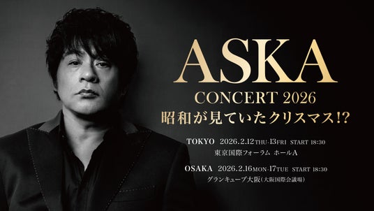ASKAが2009年、2012年に開催し、大きな反響を呼んだコンサート「昭和が見ていたクリスマス!?」が、この度、2026年2月に東京・大阪にて開催が決定いたしました。東京公演は2月12日・13日東京国際フォーラム ホールA、大阪公演は2月16日・17日グランキューブ大阪にて開催いたします。約14年の時を経て、再びあの温かい光が、現代に生きる私たちの心を照らします。更に、今尚輝き続けているシンガー岩崎宏美をゲストに迎え、デュエット曲「Love is alive」を、こちらも14年振りにお届けすることになりましたのでコメントと共にお知らせいたします。