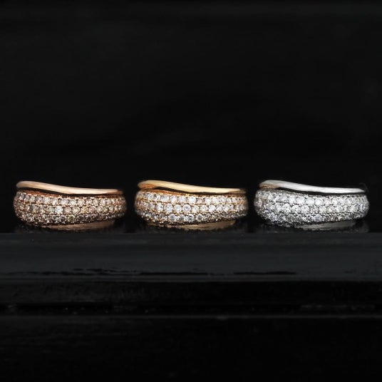 細やかなダイヤモンドをすき間なく敷き詰めた、贅沢な輝きのピンキーリング。イエロー・ホワイト・ピンクの3色のゴールドからお選びいただけます。今回は現品をご試着・ご購入いただけるまたとないチャンスとなっております。
