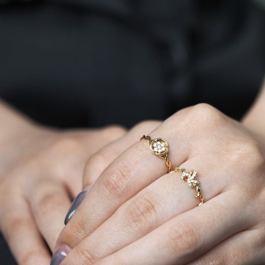 たとえば、そっと風が触れたような感覚。やわらかな光に包まれた草花が微笑むような一瞬。「ナチュール」は、そんな何気ない自然の情景を、そのまま指先に閉じ込めたようなコレクションです。花びらのカーブや風の軌跡、木々のしなやかさ。自然の線に倣いながら、一本一本の金線と小さな煌めきで、やさしくかたちづくられています。
