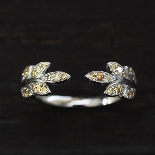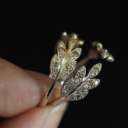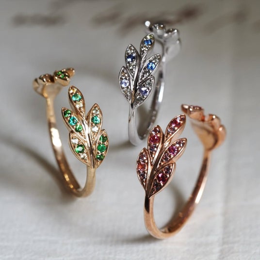 そっと芽吹いた若葉のように、指先に自然の余白を生み出すリング「Alba(アルバ)」。左右対称の繊細なフォルムが特徴のフォークリングです。