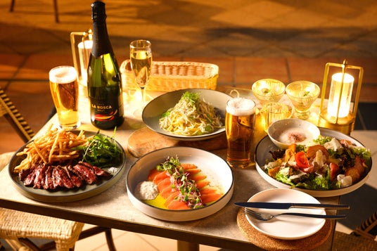 "大切な方とみなとみらいの海辺で夏の夜をゆったりと楽しんでいただきたい"、そんな想いを込めたカジュアルに楽しめるシェアスタイルのディナープランです。ビアガーデンのように開放感のある空間で、友人や恋人、家族と料理を分け合いながら夏のひとときを満喫いただけます。「鎌倉ハムのシーザーサラダ」「スモークサーモンのカルパッチョ」「しらすと九条ネギのアーリオオーリオ」「牛ハラミステーキ&フレンチフライ」など、夏の食欲を刺激する贅沢メニューをご提供いたします。さらに、ビールやワイン、レモンサワー、カクテルなどのアルコールドリンクもフリーフローでご用意。特別な日のディナーはもちろん、週末のちょっとしたご褒美時間にもおすすめです。