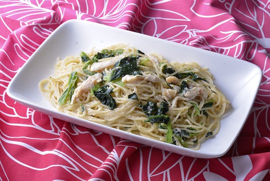チキンファファ風スパゲッティ南太平洋の郷土料理「チキンファファ」をイメージ。やわらかいチキンにまろやかなココナッツソースは、トロピカルなのにホッとする美味しさ。