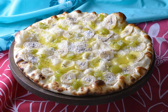 ハニーマカダミアピザマカダミア×バナナ×キウイに、甘く香ばしいハニーバターソースがとろ~り。南国気分を味わえる、デザートピザの決定版!